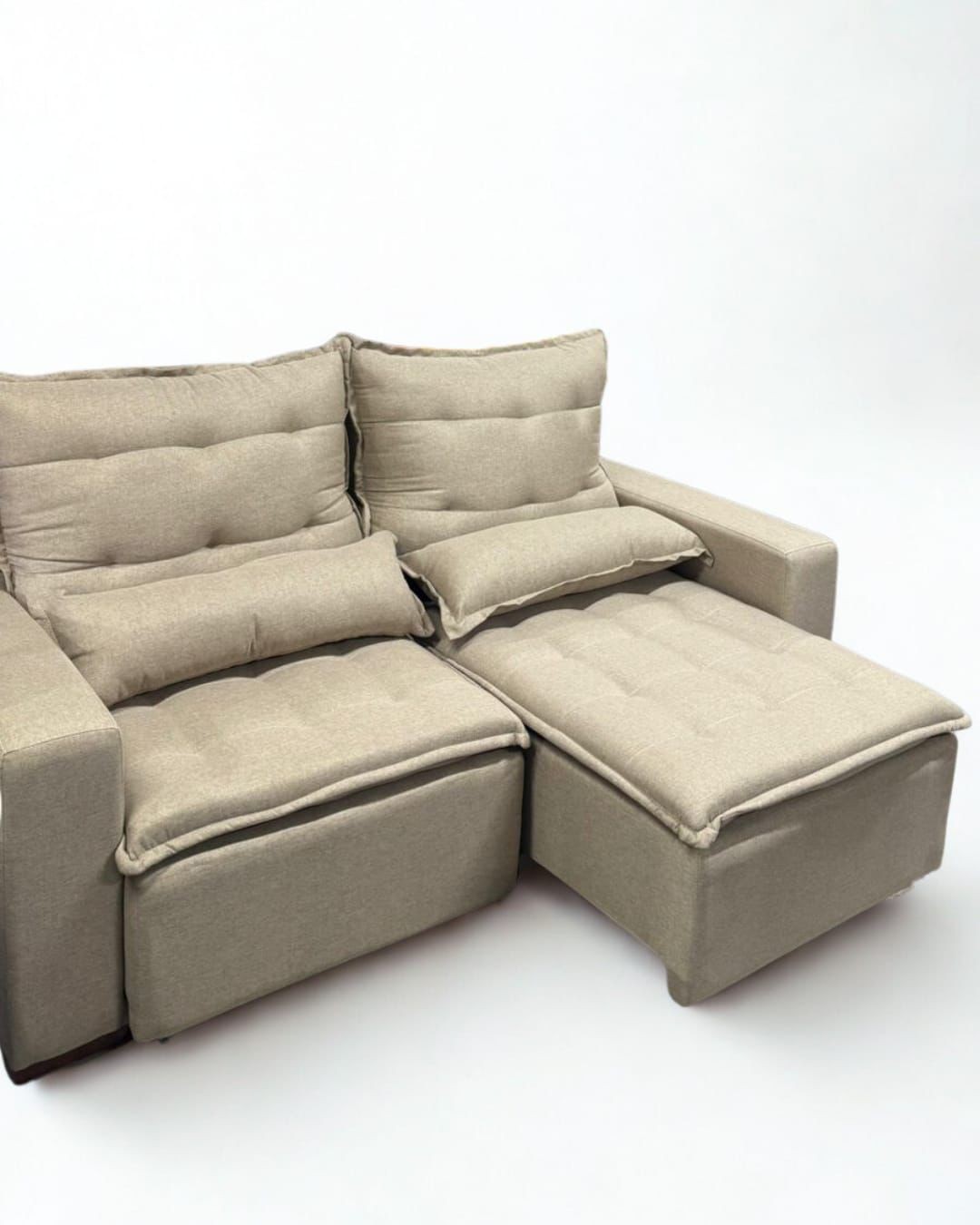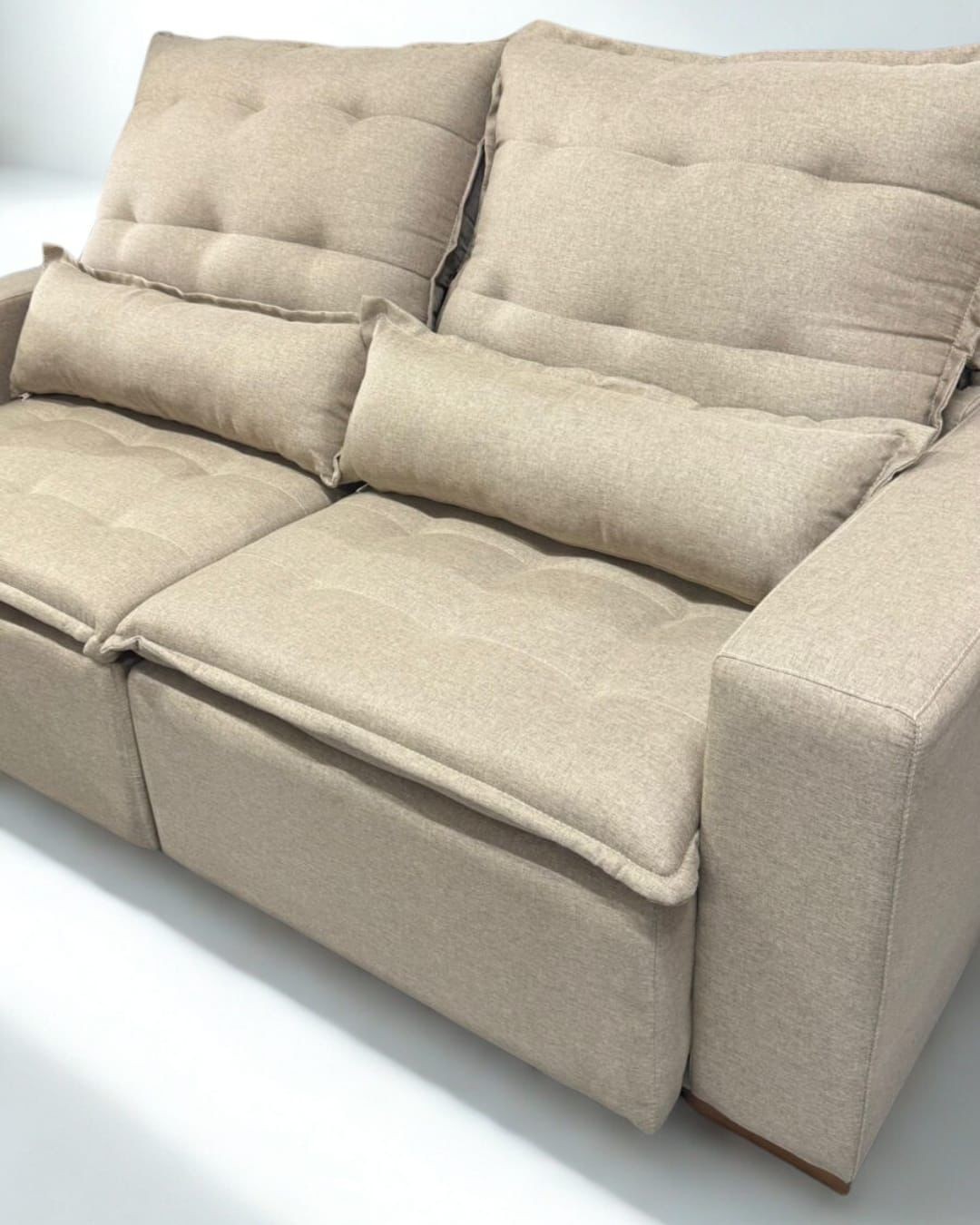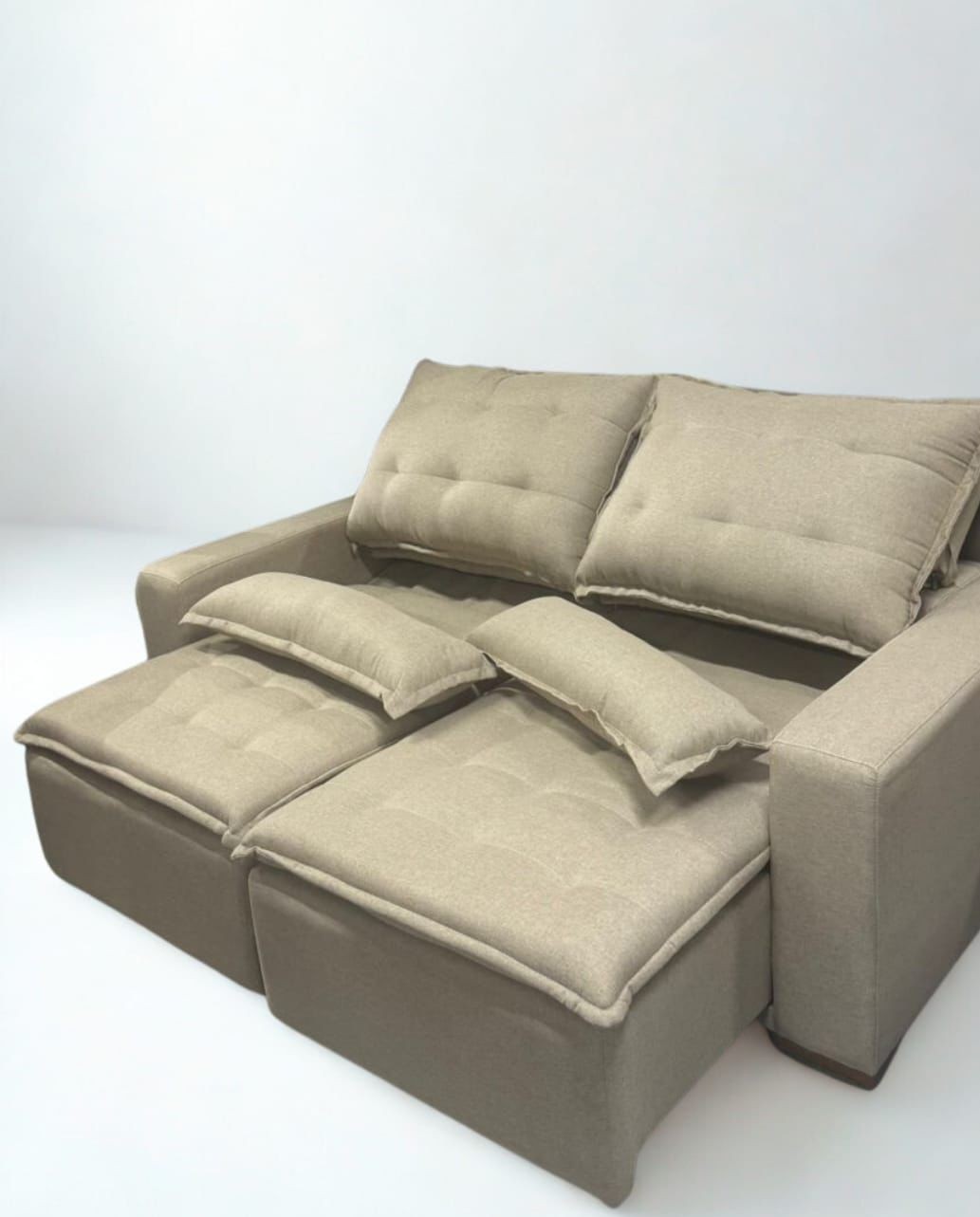 O Retrátil Milano oferece sofisticação e funcionalidade em um único estofado. Com encosto reclinável e assento retrátil, garante conforto para momentos de lazer, além de almofadas com fibra siliconada que proporcionam suavidade ao toque. Ideal para quem busca praticidade sem abrir mão do design moderno.