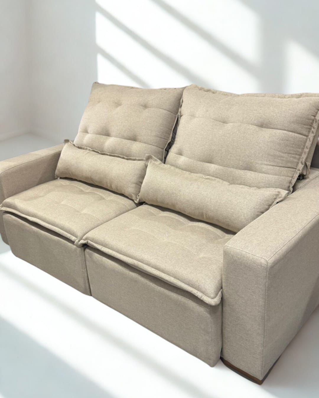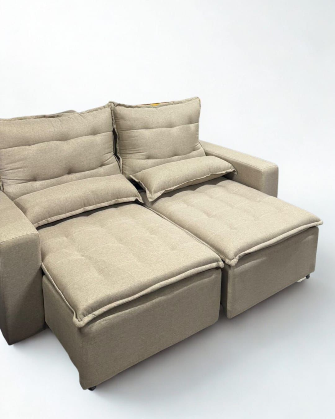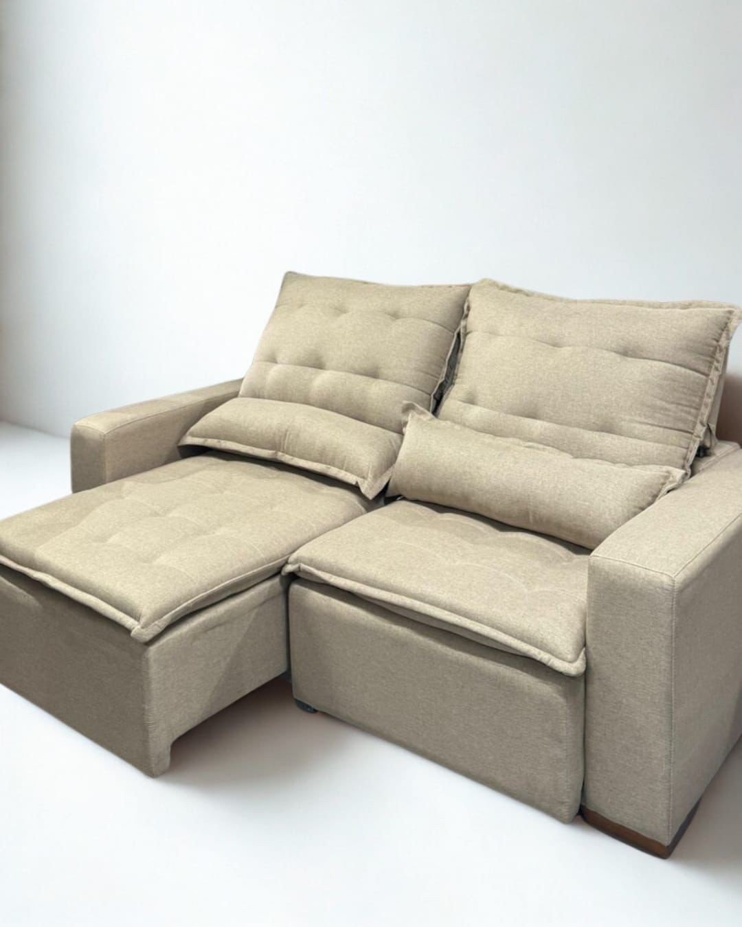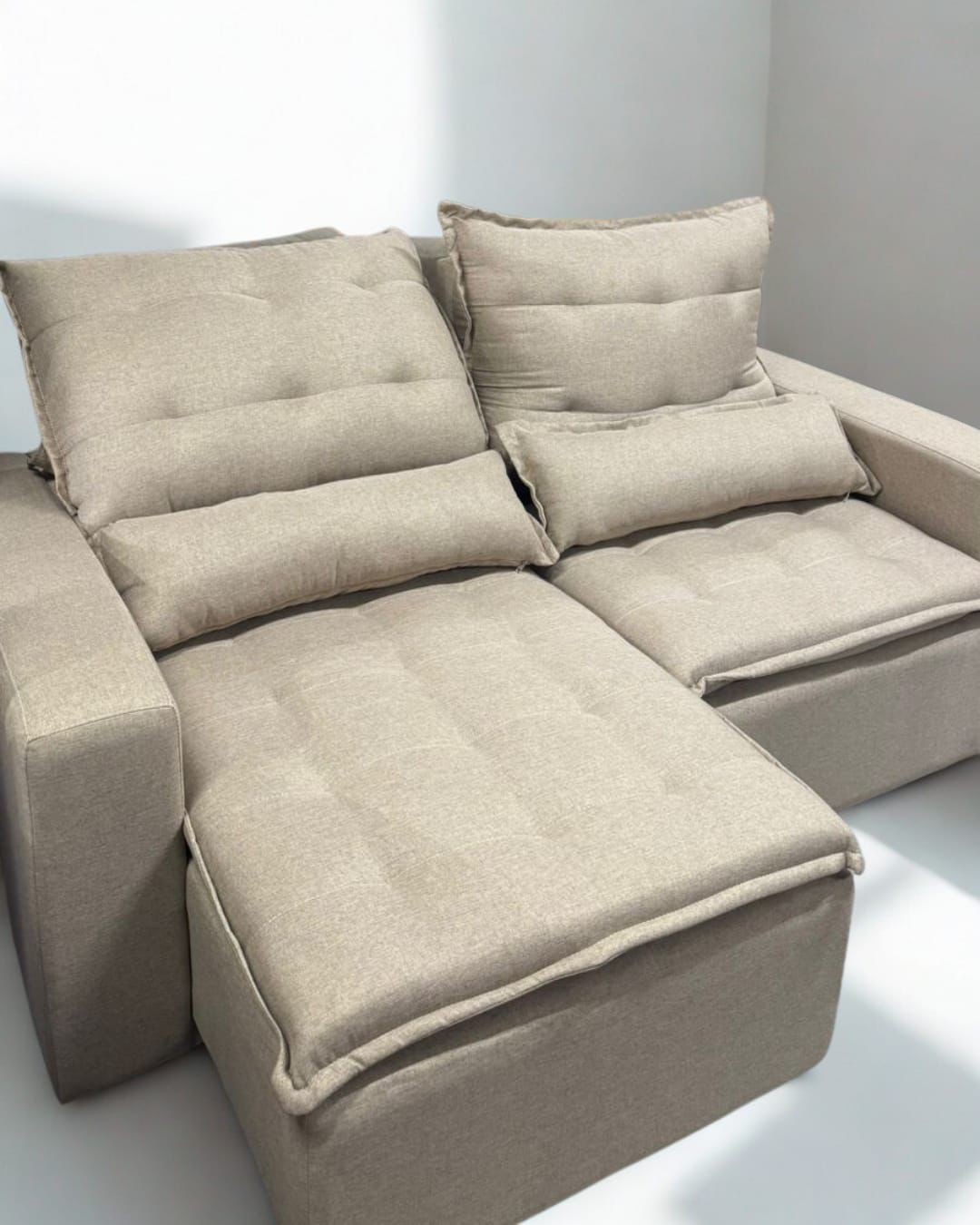 O Retrátil Milano oferece sofisticação e funcionalidade em um único estofado. Com encosto reclinável e assento retrátil, garante conforto para momentos de lazer, além de almofadas com fibra siliconada que proporcionam suavidade ao toque. Ideal para quem busca praticidade sem abrir mão do design moderno.